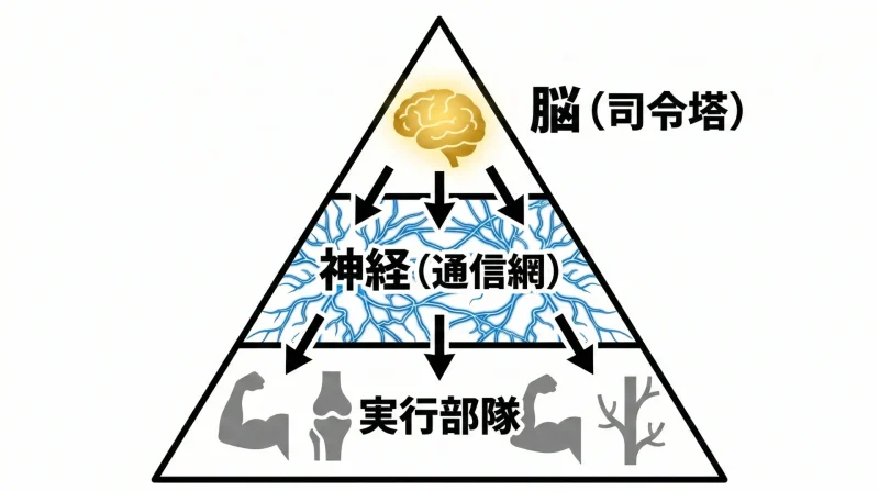 この警報を止めるには、火種(患部)を探すだけでなく、異常信号を運んでいる「電線(末梢神経)」のむくみを取り、判断を下す「管理室(脳)」に安全を伝える必要があります。